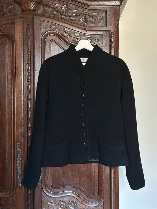 Black Wool Structured Buttoned Jacket