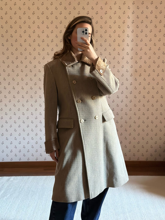 Vintage Faux Shearling Trench Coat