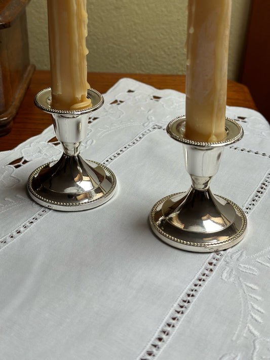 Set Of Two Vintage Silver-Plated Metal Candle Holders