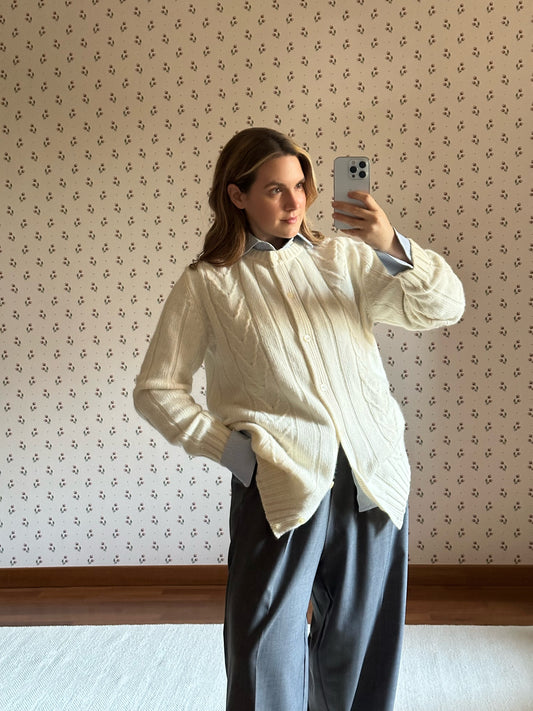 Vintage Wool & Angora Milk White Maxi Cardigan