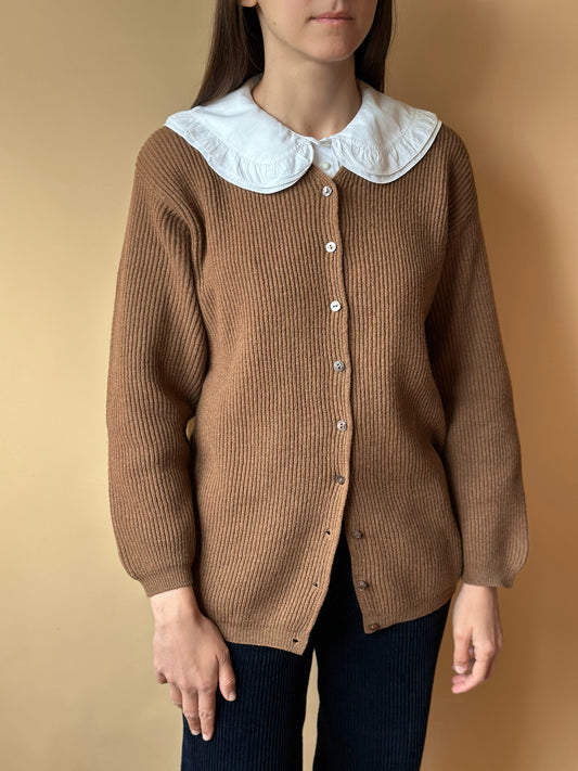 Vintage 100% Lambswool Caramel Ribbed Cardigan