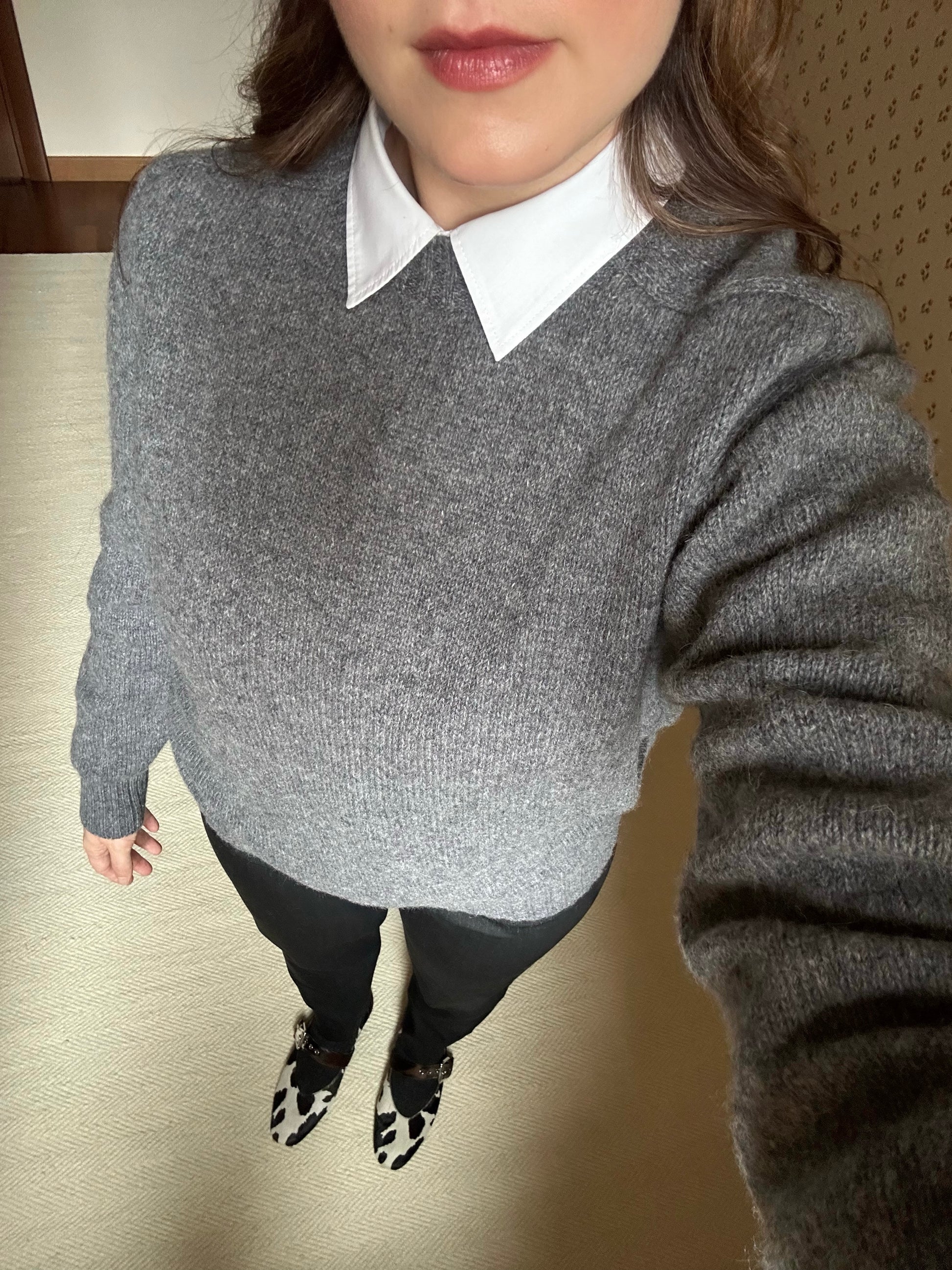 Extremely warm and super versatile gray sweater featuring round neckline, long sleeves, comfy fit and ribbed hem and cuffs. This timeless and extremely versatile piece presents an easy cut with slightly dropped shoulders. Deadstock piece, never been worn before and still comes with its original label.