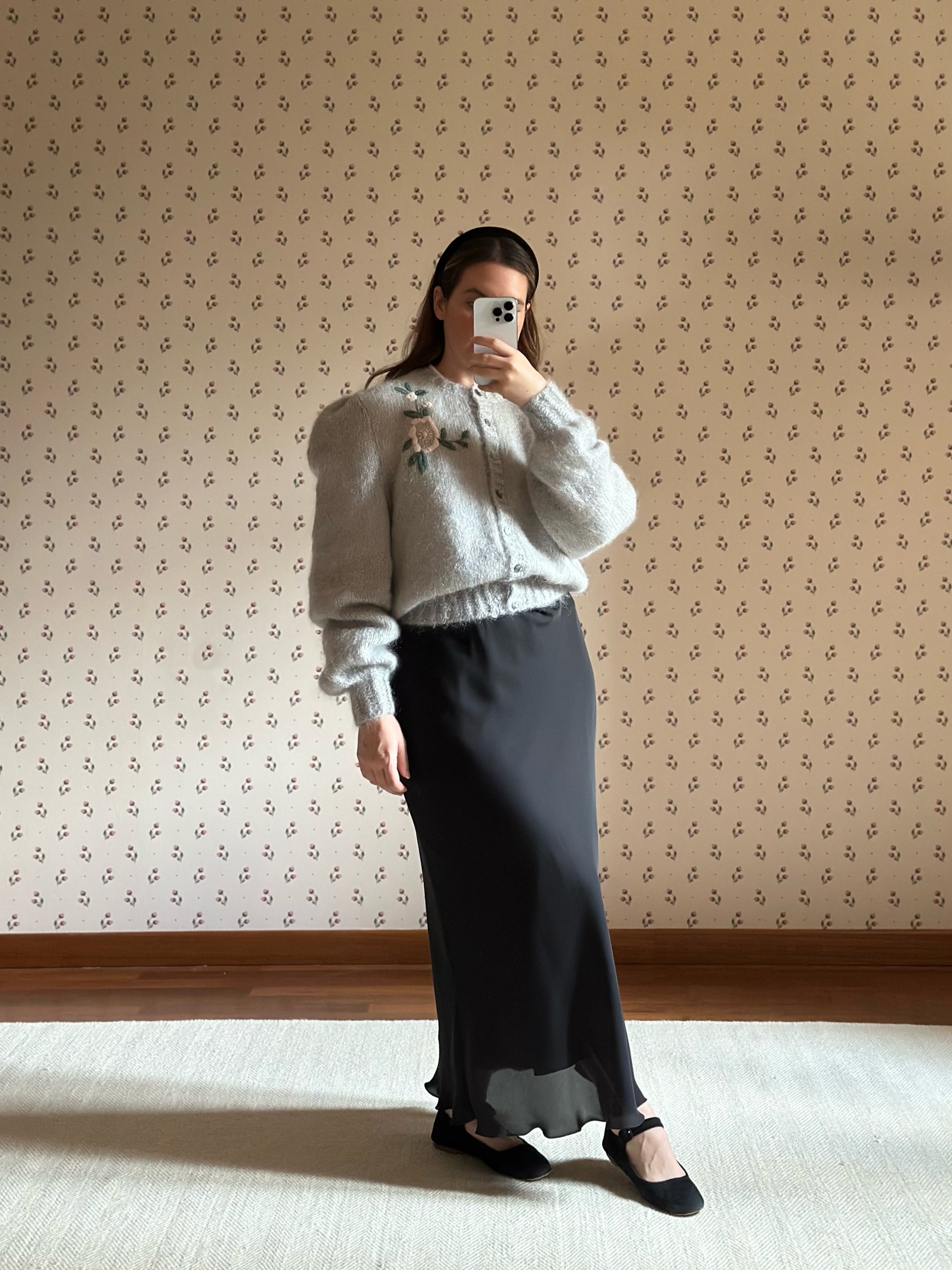 Classy and sophisticated long bias cut skirt featuring elasticated waist, super soft texture and a smooth, fluid drape with a romantic ruffled hemline. A beautifully versatile piece that can be styled with a cosy and soft knit for daywear or with an elegant silk top for evening wear.