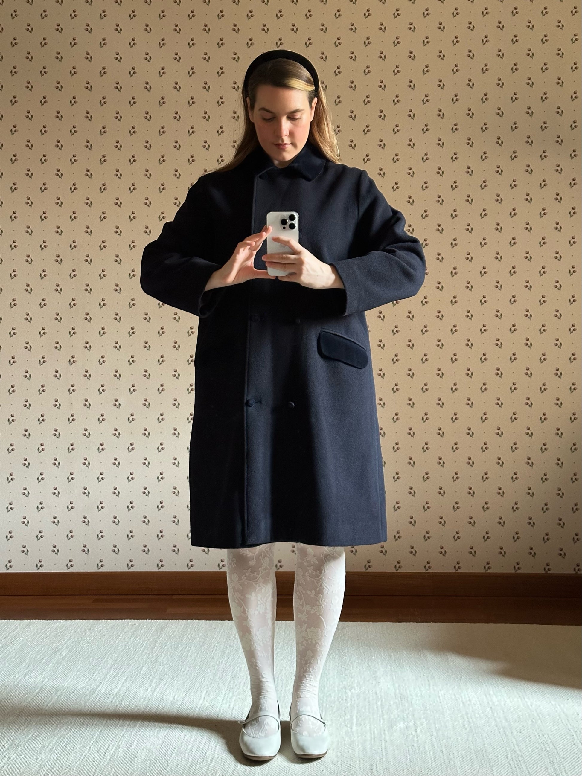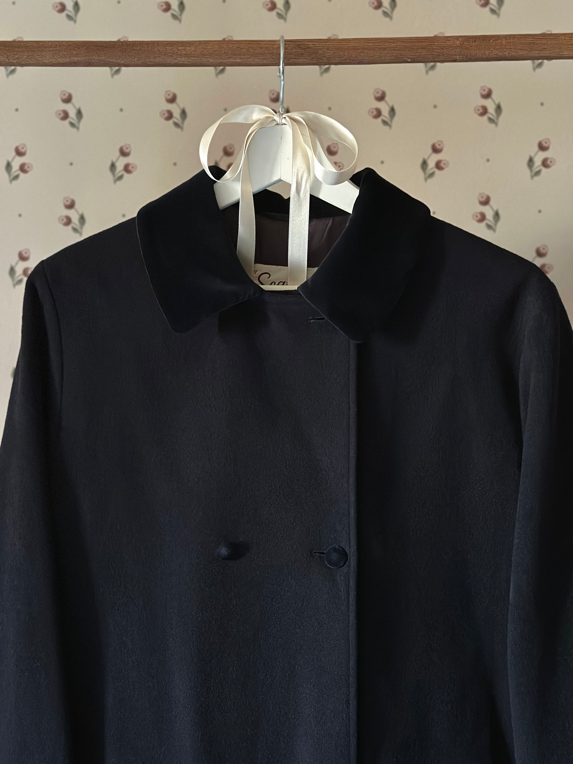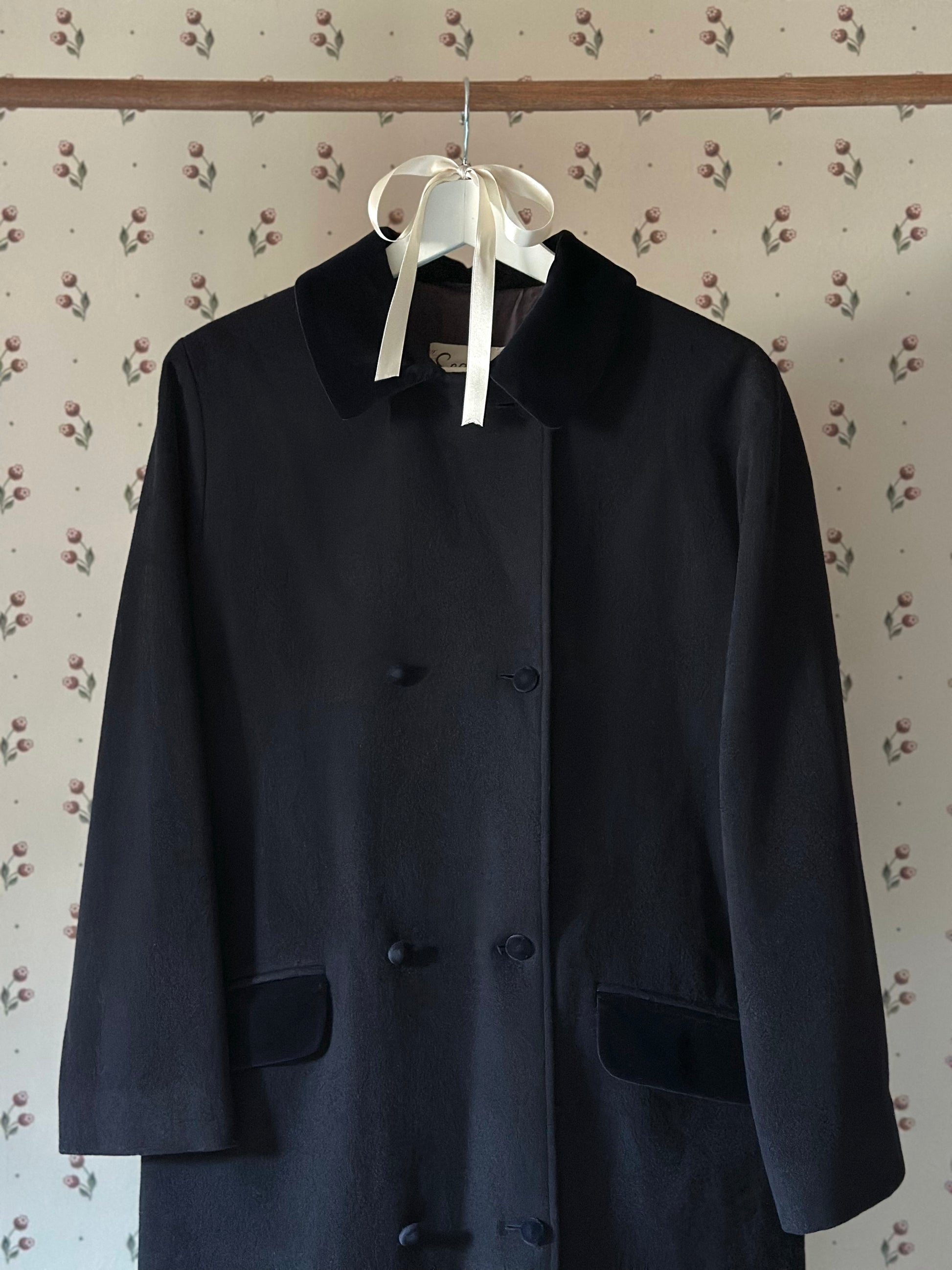 Vintage Blue Swing Coat With Velvet Details