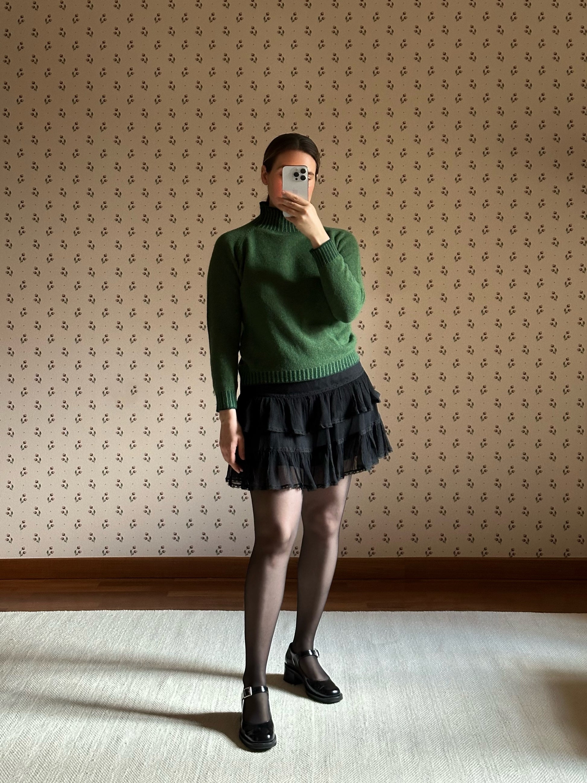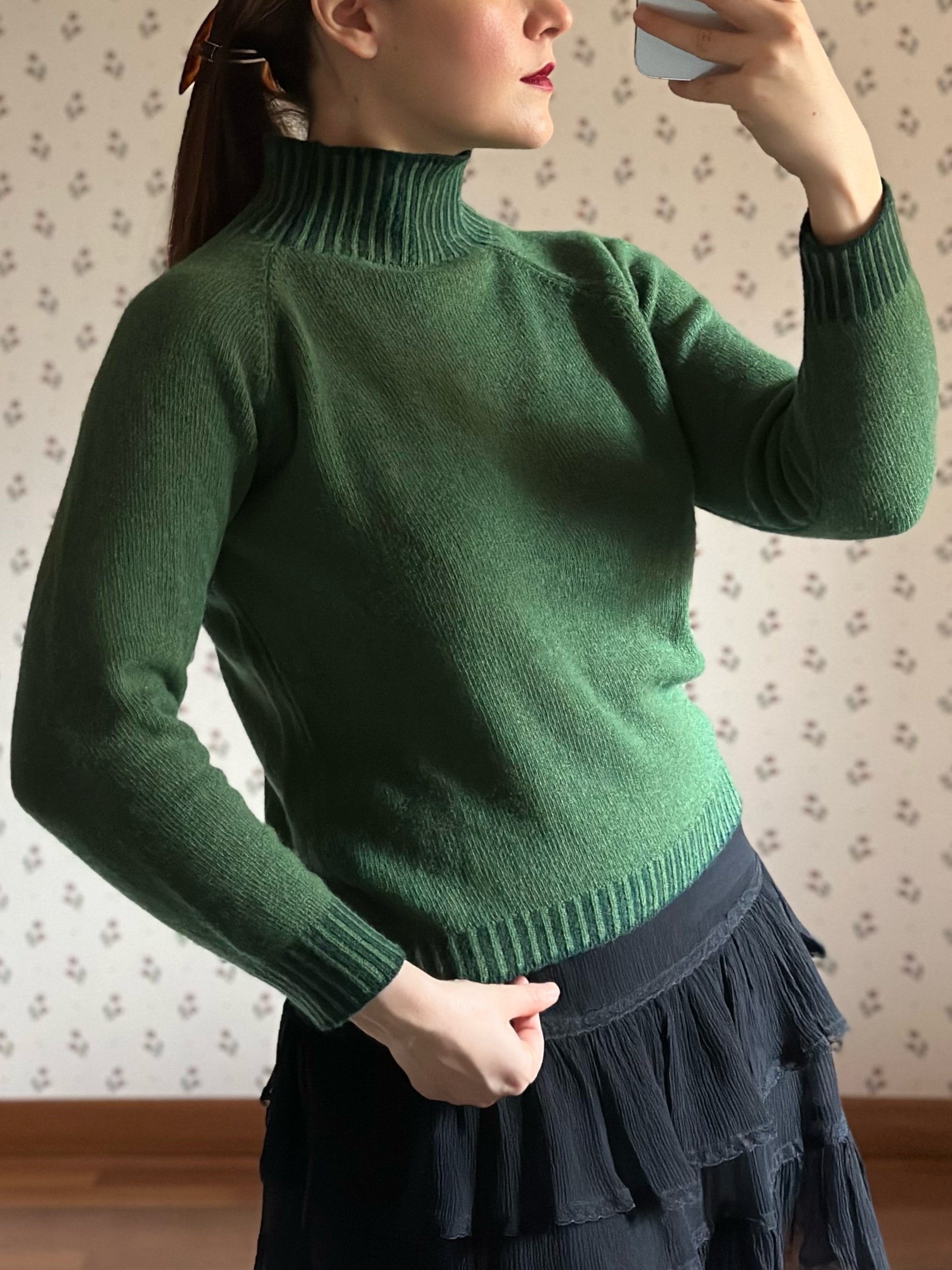 Vintage Green Wool & Cashmere Mock Neck Sweater
