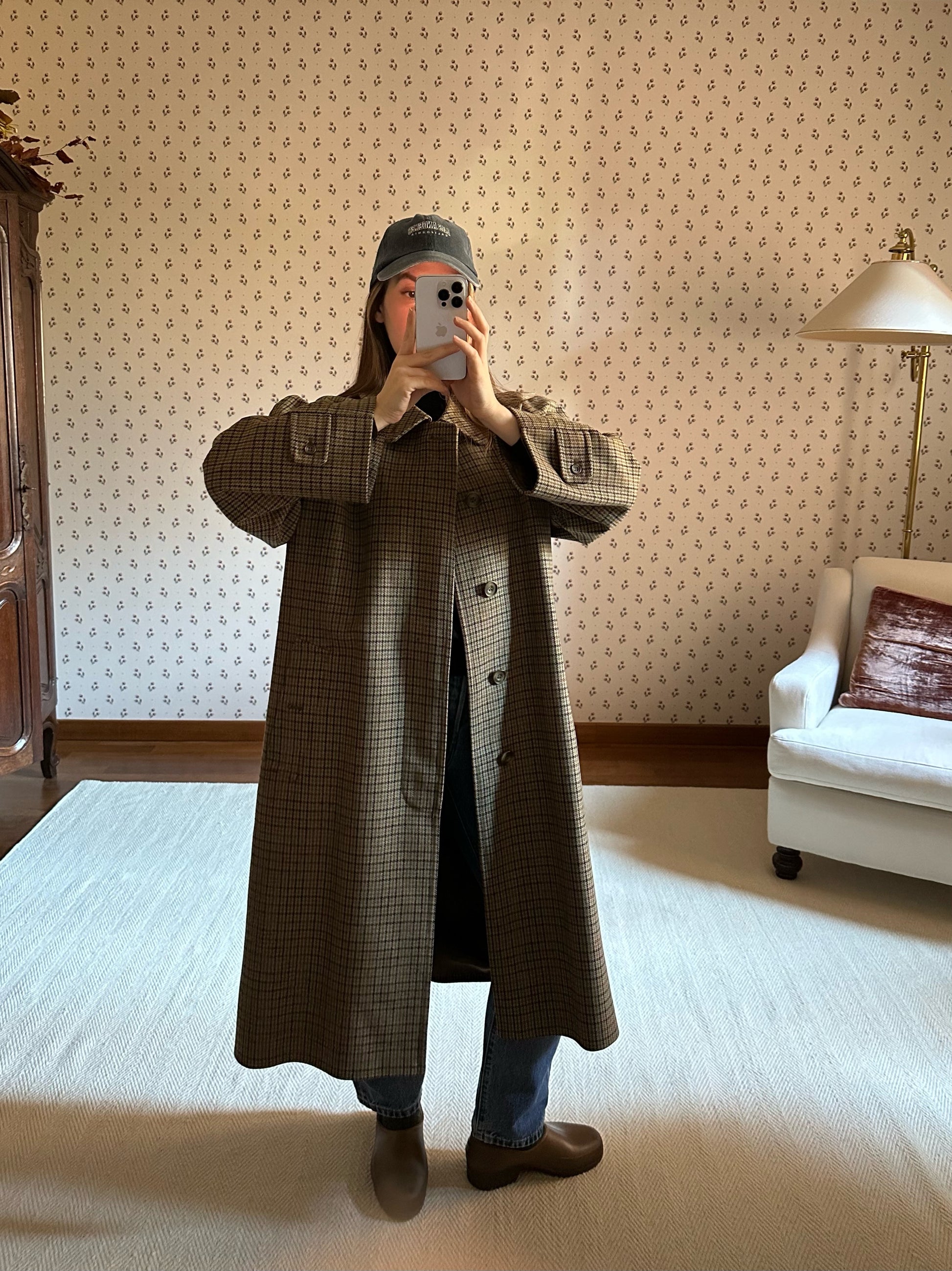 Rare and sophisticated balmacaan style coat by Austin Reed, British fashion retailer founded in 1900 by tailor Austin Leonard Reed. The coat features raglan sleeves, front button fastening and a structured yet comfortable fit. The coat is crafted from a soft and warm yet lightweight 100% wool cloth and is fully lined, making it perfect for mid-season outfit as well as for layered full winter looks.