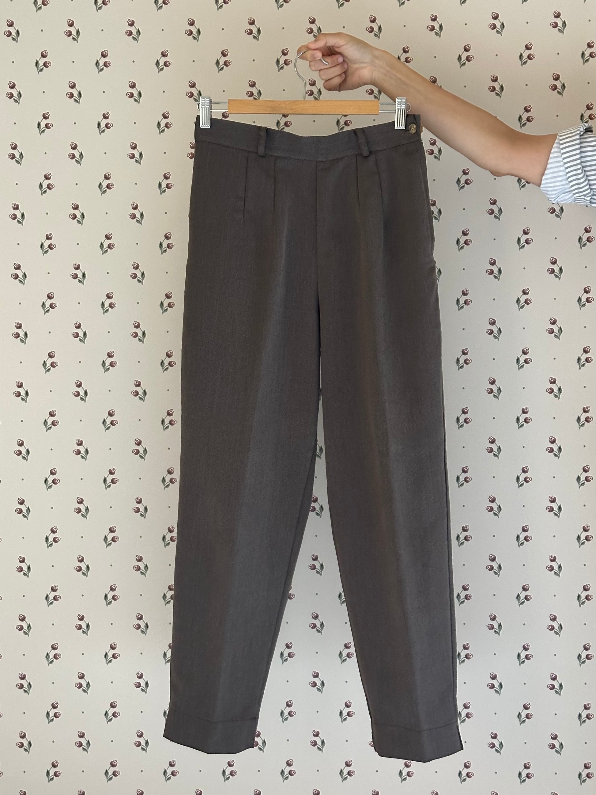 Classic and timeless vintage trousers featuring straight leg, high waist, pleats and side fastening with zip and two buttons, to adjust and make the waist larger or smaller.